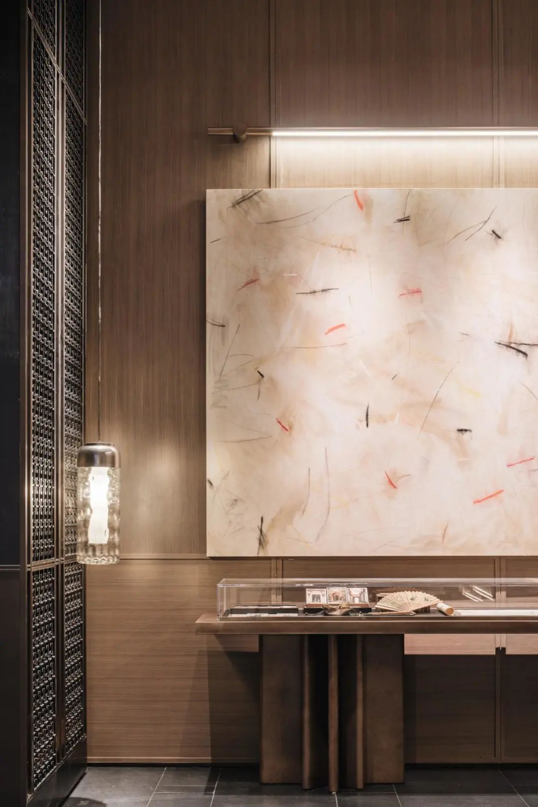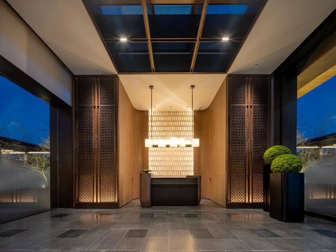 大门气势恢弘——35米长、6米高的超大尺度门堂,同区域内可谓是绝无仅有。一瞬间,东方美学背后所承载的历史厚重感,透过门堂瞬间击穿感官,让人不自觉升起对文化和历史的敬畏感。