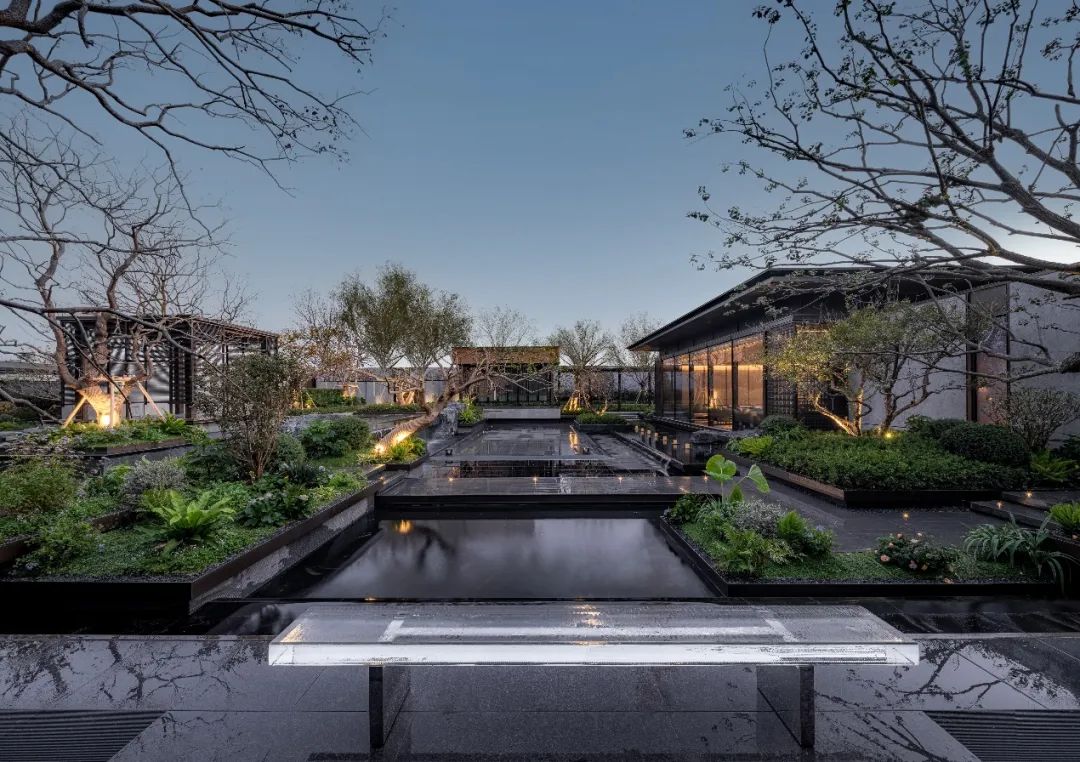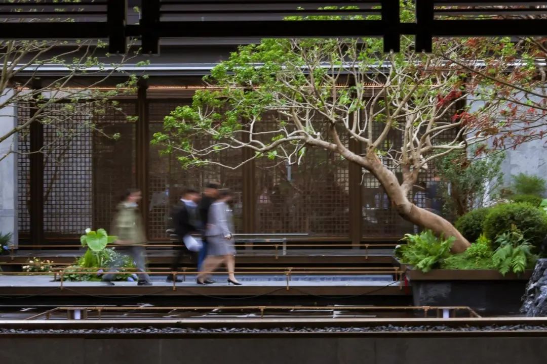 与黑山石对望的朴树,造价就接近百万元。就连其他的绿化树木,也是园林师跑遍了全国九个省严选出来的,光是每一棵的搬运成本就高达5000 元。