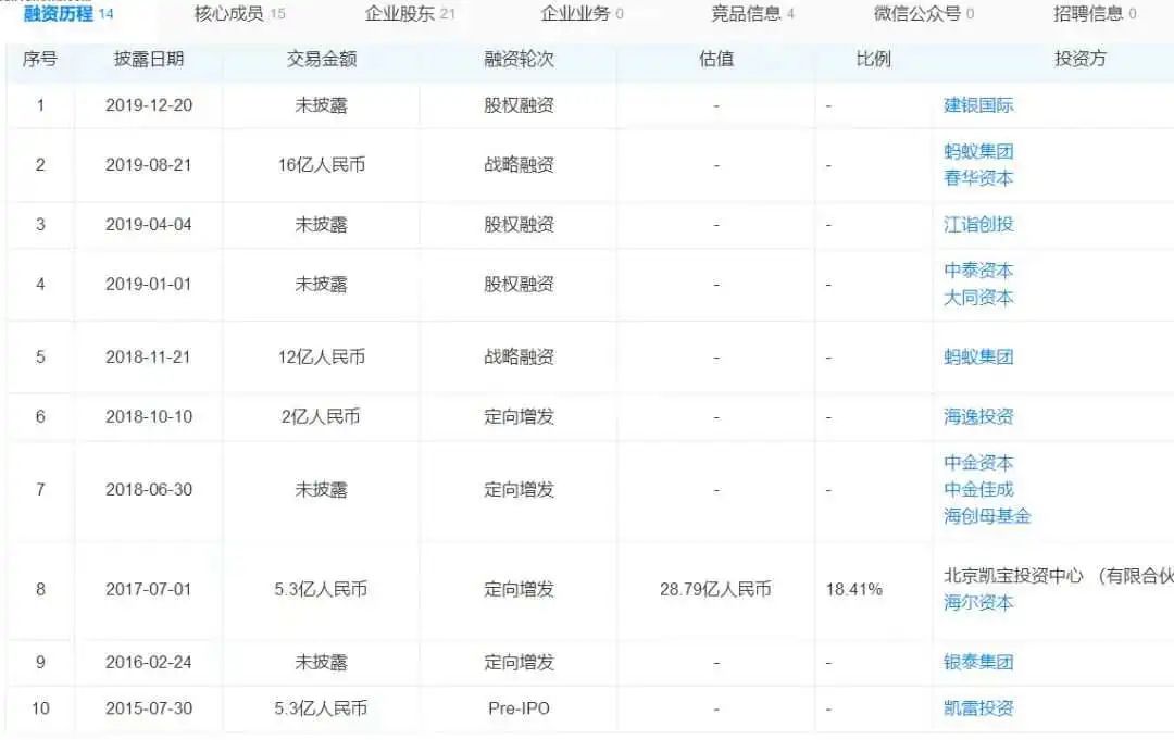 根据天眼查披露的信息,成立至今友宝在线共经历十几次融资,除了沈国军和季琦的天使投资,2015年Pre-IPO轮友宝在线获得凯雷投资5.3亿元融资,还有包括北极光创投、汉景家族办公室、云锋基金等知名投资机构。2017年公司还曾尝试过借壳A股上市公司新华都,最终以失败告终。