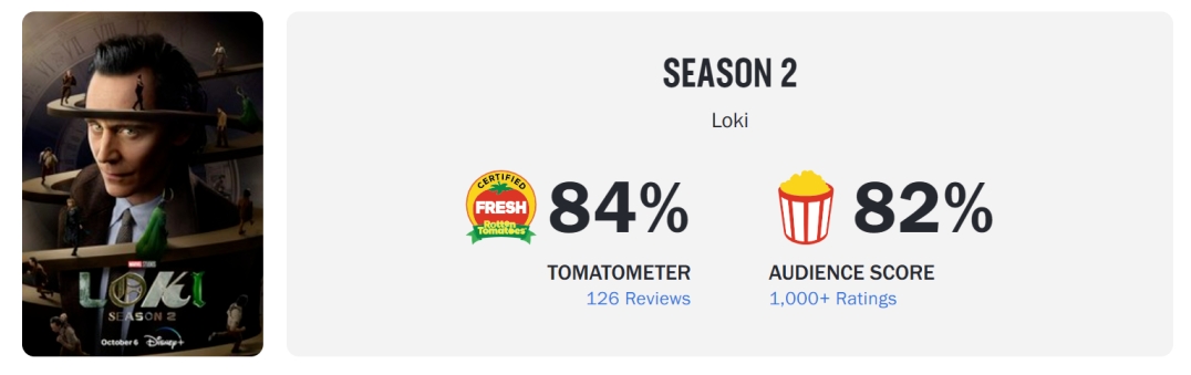 相比之下,《洛基》第一季的两项指标分别为92%和90%,在漫威影业的Disney+剧集中仍属顶尖。在IMDb网站上《洛基2》也维持超强人气,两季平均分高达8.2分(36.5万个评价)。