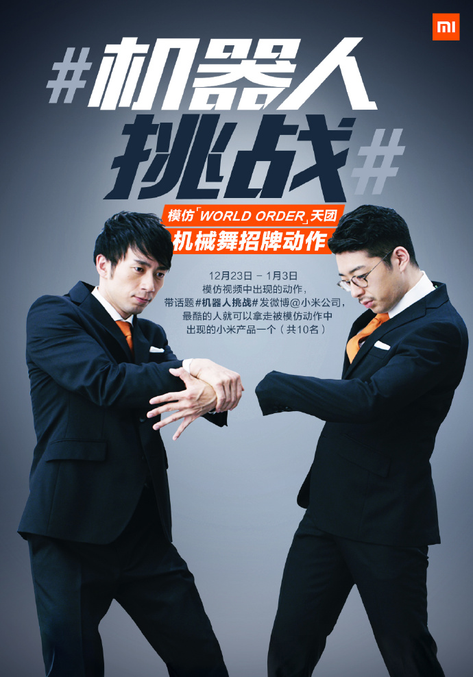 小米也试图通过这支视频掀起更多社媒讨论。他们发起了#机器人挑战#的社媒活动,邀请消费者们模仿视频中出现的动作,胜者有机会获得小米的产品——形式有点类似前些时候流行的“假人挑战”。