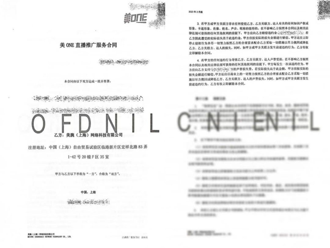 「京东采销喊话李佳琦」事件中,提到品牌与李佳琦签署了「底价协议」,违反协议即赔偿巨额违约金。虽然美ONE和海氏都否认了「底价协议」的存在,但网络很快流传出一份美ONE和品牌方的协议。