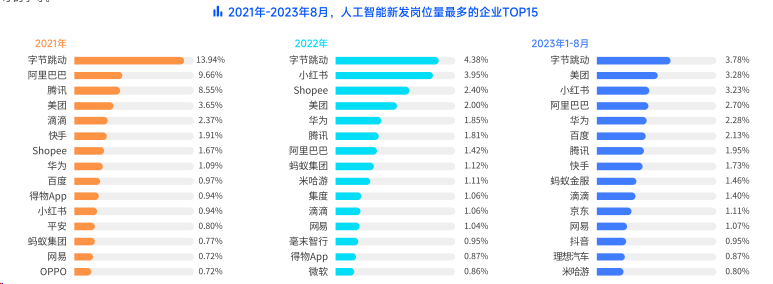“2023年1-8月,新发人工智能岗位量已经达到2022年全年水平。”