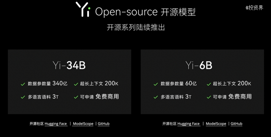 截止目前,Yi系列模型已在 Hugging Face、ModelScope、GitHub 三大全球开源社区平台正式上线,同时开放商用申请。这也是创立至今不到8个月时间里,零一万物交出的第一份答卷。