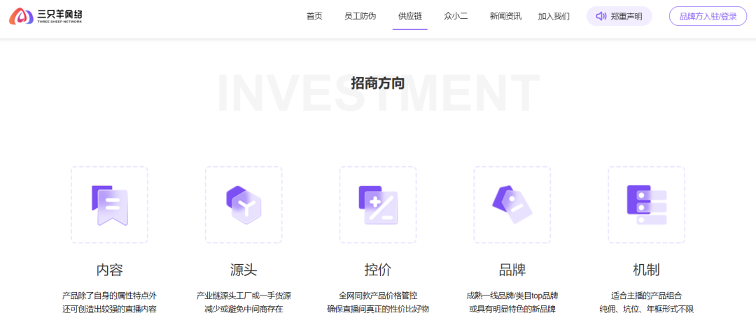 同时,“三只羊”还会对供应商进行不定期检查,存在不合规范、不合标准现象的供应商,会第一时间收到整改通知,表现优异的供应商,会收到投资入股10%的邀请,实现深度绑定、加大研发投入。