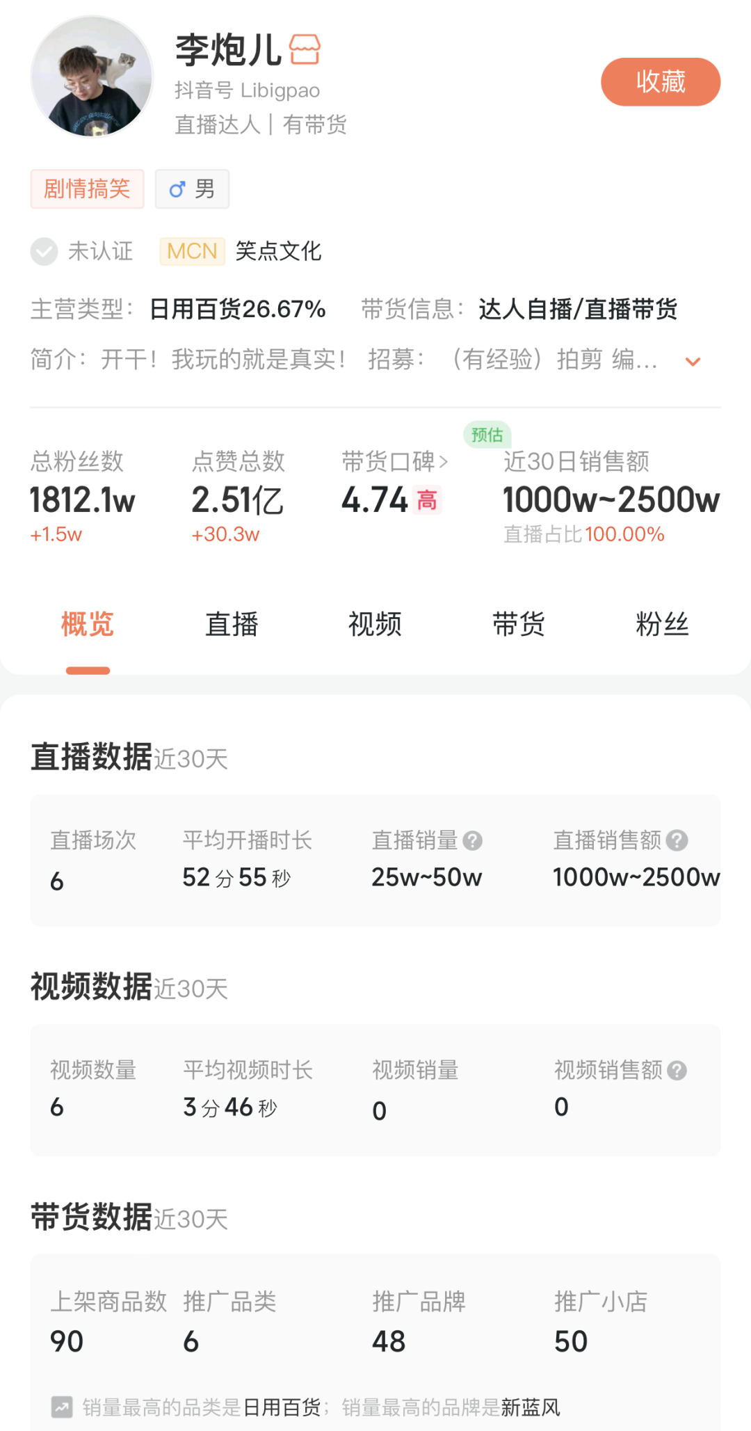 像网红李炮儿,一句“玩的就是真实”,凭借各种离谱又爆笑的挑战,半年涨粉超千万。蝉妈妈数据显示,在其两天的首次带货直播中,GMV在1000w-2500w之间,仅上线一个品就冲到了带货榜单第一名。