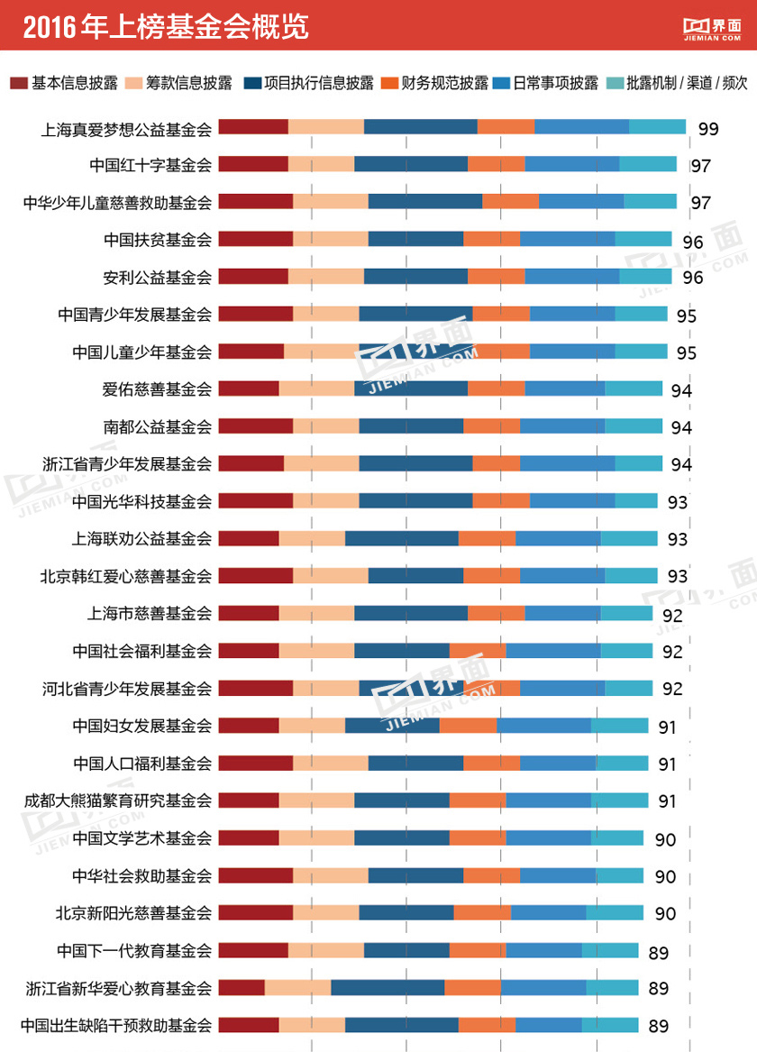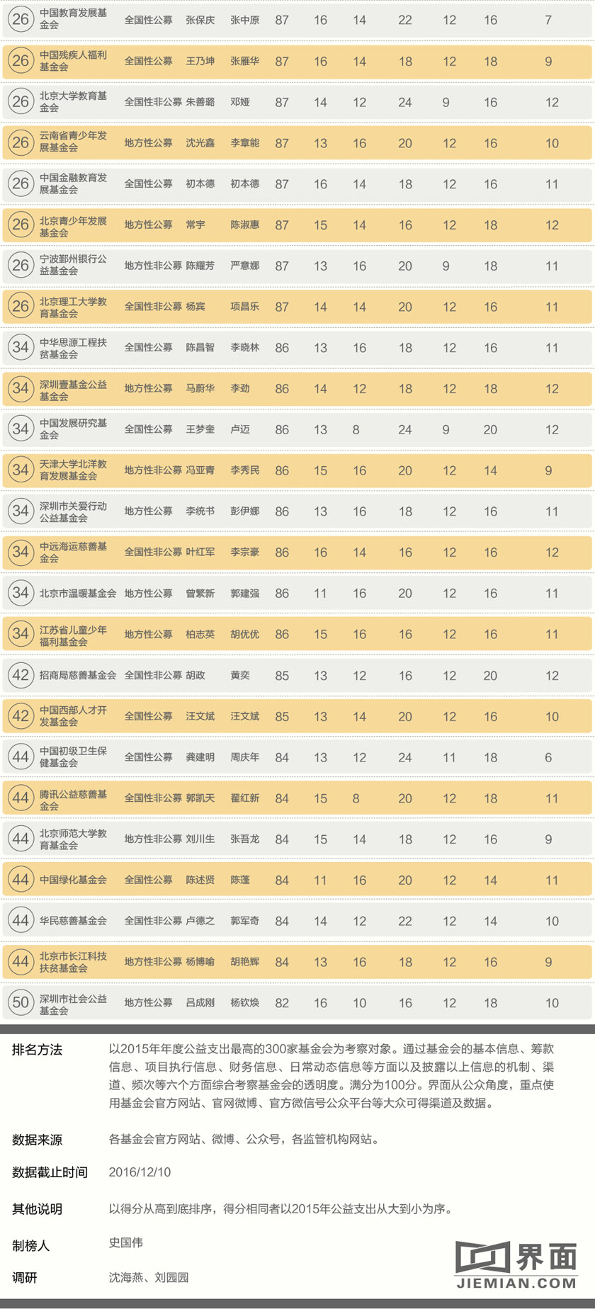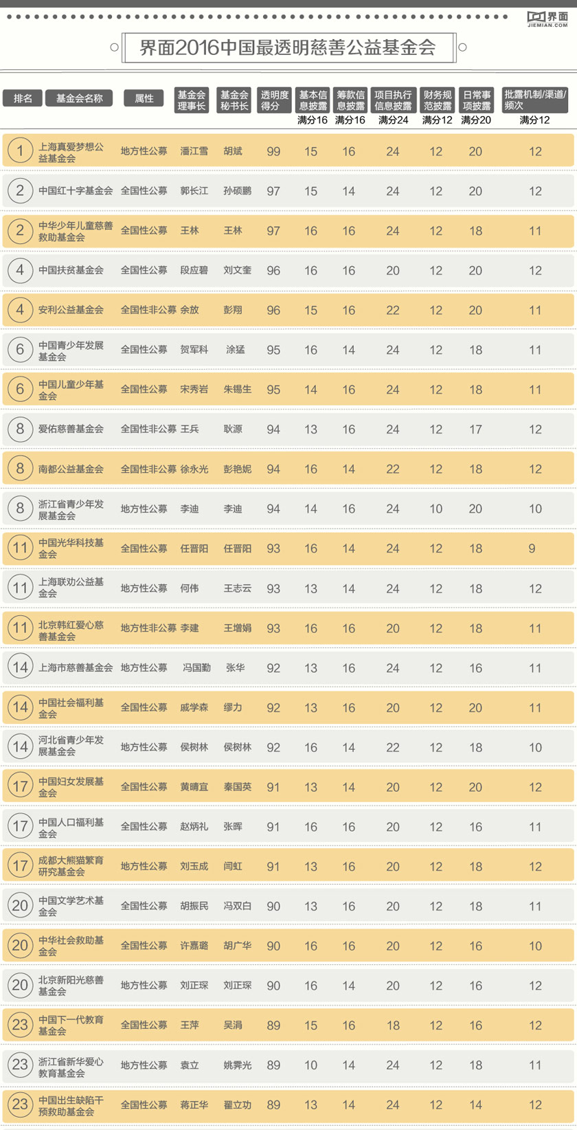 附榜单:界面2016中国最透明慈善公益基金会排行榜