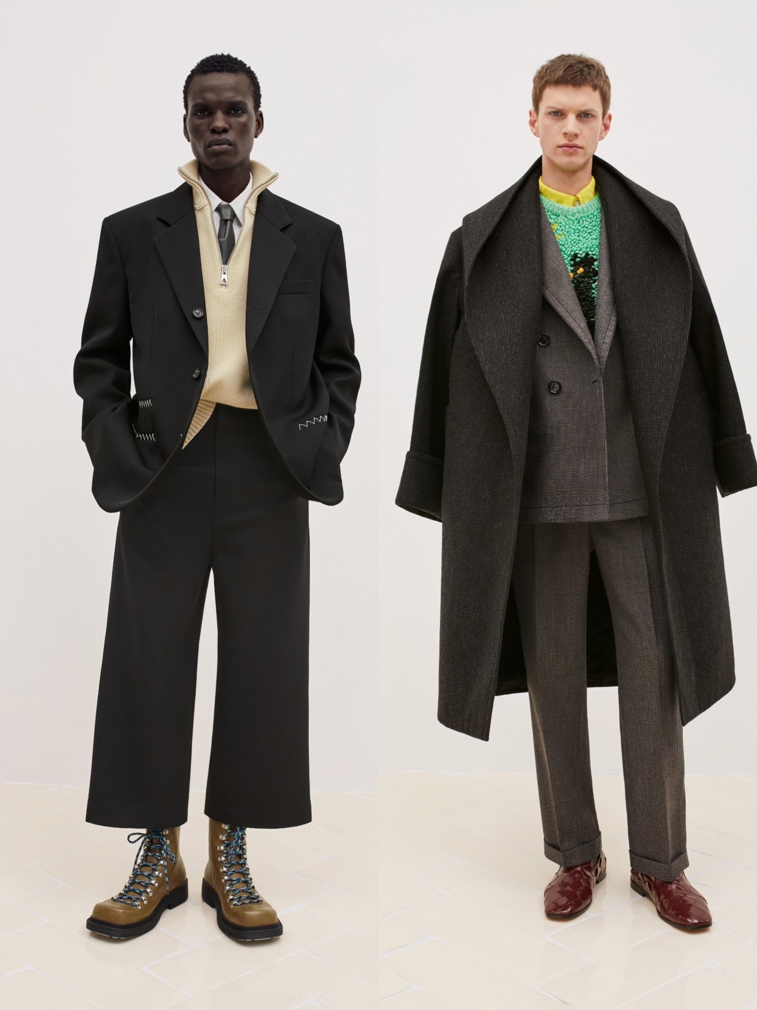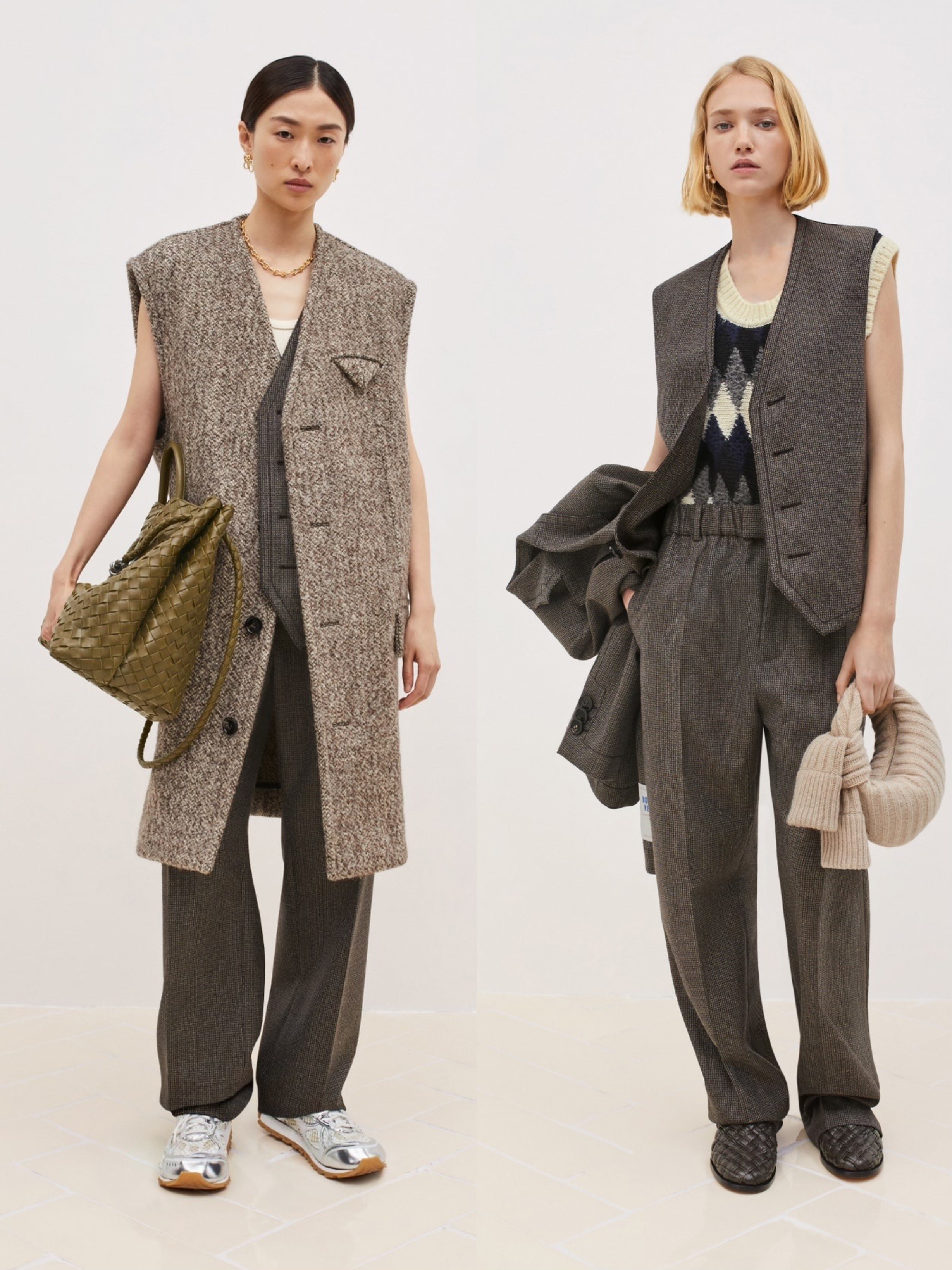 此外,意大利传统戏剧——假面喜剧是本季的重要参考,他将表演者所穿的喜剧服装与BOTTEGA VENETA标志性的编织图案相比较,薄荷色、酒红色和白色皮外套搭配抢眼的亮黄色和墨绿色梭织衬衫及长裤,突显了BOTTEGA VENETA对卓越工艺的坚守以及拥抱乐趣和实验元素的风格。