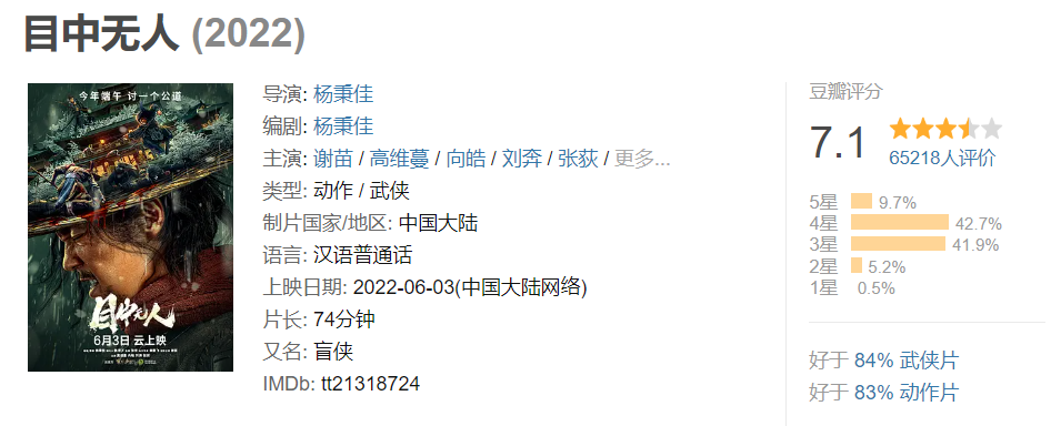 小娱发现,除了爱奇艺的“云影院”,优酷也在去年推出“超级首映”,腾讯也推出了“云首发”厂牌。平台的作用从早期的引导、扶持,变为主导、主控、主动筛选。这种强调院线配置的电影也取得过不错的成绩,《目中无人》《东北警察故事2》的豆瓣评分都在7分以上。