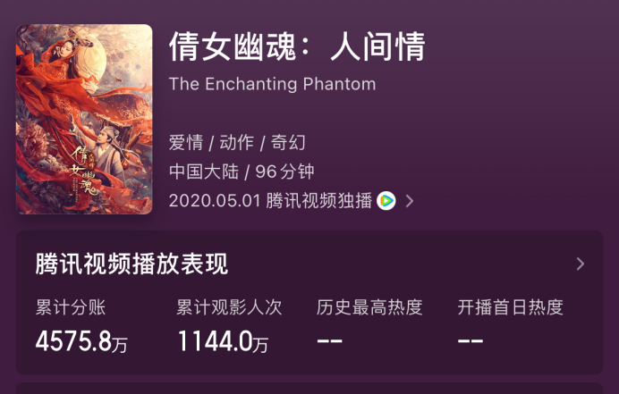 在网大圈内更让人唏嘘的新闻,是曾经制作出4500万票房《倩女幽魂:人间情》的公司“吾道南来”,被中广天择告上法庭,并被冻结股权。