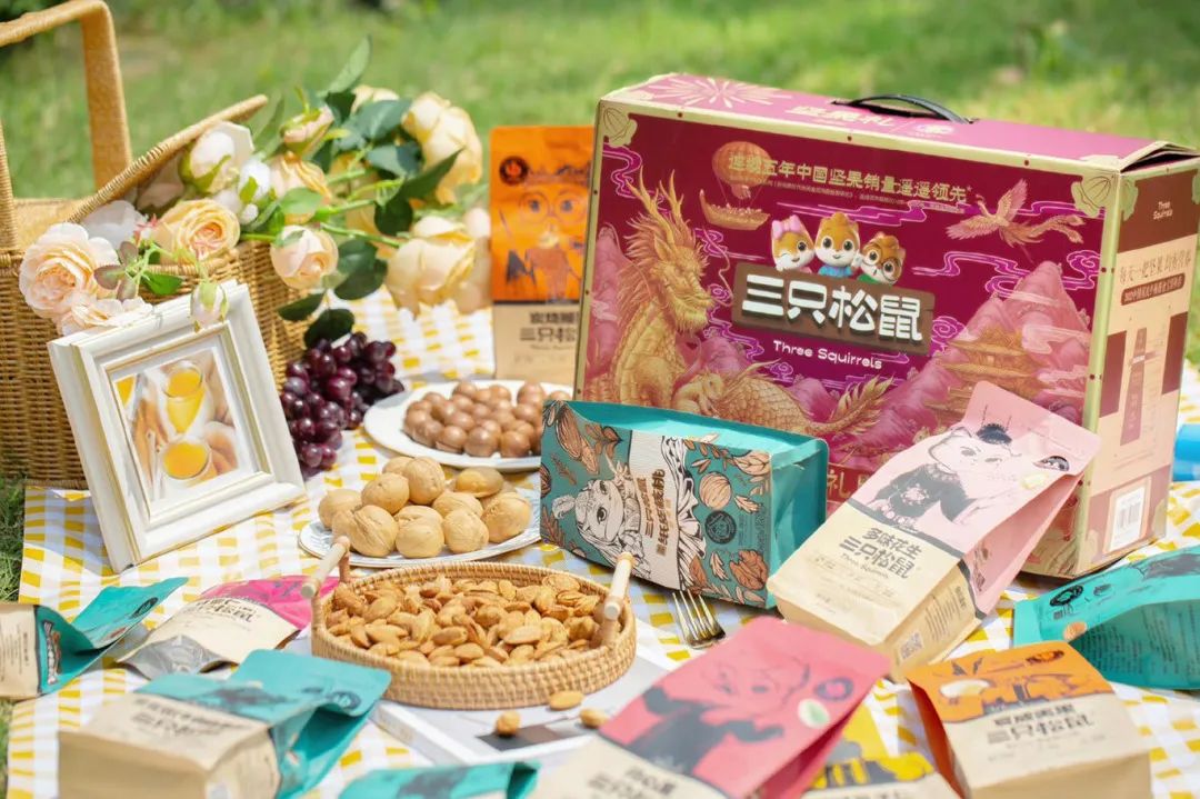在品牌的IP化中,三只小松鼠分别代表坚果、花茶、干果类产品。其2023年半年报显示,混合坚果贡献了56.79%的销售额,同比下降30.50%。