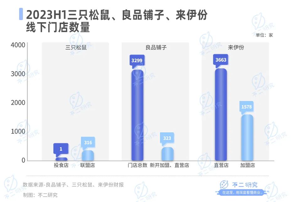 财报数据显示,截至2023年6月30日,良品铺子共有门店3299家,今年上半年新开直营门店和加盟门店共计323家,门店数量比三只松鼠的两倍还多。
