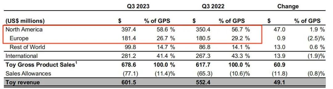 按地区划分,上半年,美泰在北美、EMEA(欧洲、中东与非洲)的收入持续下滑,亚太和拉美地区则稳定增长。到了Q3,美泰表现出全线增长的趋势,北美、EMEA、亚太和拉美地区的收入分别同比增长了10%、3%、18%、14%。