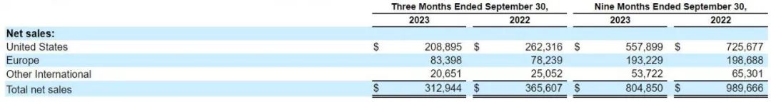 按地区划分,Funko在主要市场美国的销售额持续下跌,在其他国际地区的销售额也在同比下滑,但欧洲的净销售额相比去年同期有所增长。