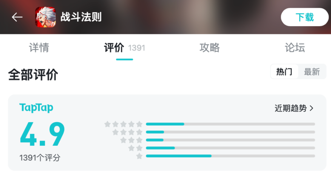玩家反馈方面,目前《战斗法则》在TapTap平台仅有4.9的玩家评分,且玩家总评论数约为1400条。且不少玩家对其氪金、网络优化、玩法操控等内容有一些吐槽。