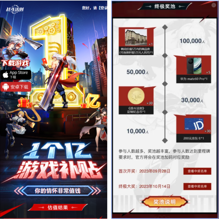 除了在直播送福利之外,《战斗法则》还推出了【一亿游戏补贴】活动,该活动分为两部分: