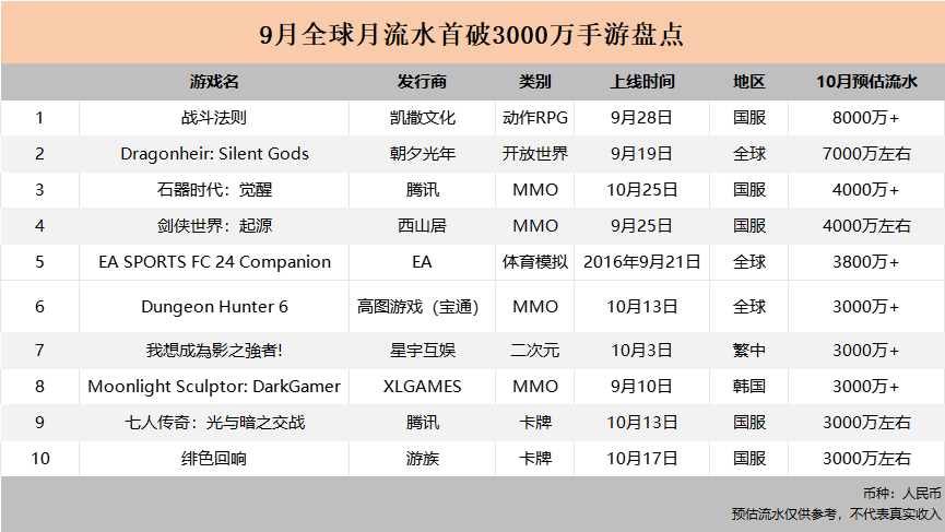 据Gamelook预估,《战斗法则》在10月份预估流水超8000万元。