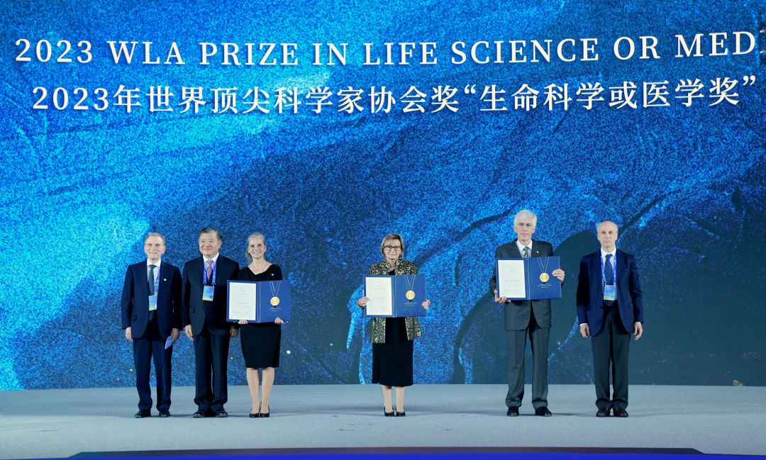 上海市委书记陈吉宁、中国科学技术协会主席万钢出席并致辞,中国科学院院士、中国红十字会会长陈竺,诺贝尔奖得主、世界顶尖科学家协会主席罗杰·科恩伯格共同为2023年世界顶尖科学家协会奖“智能科学或数学奖”和“生命科学或医学奖”得主颁奖。
