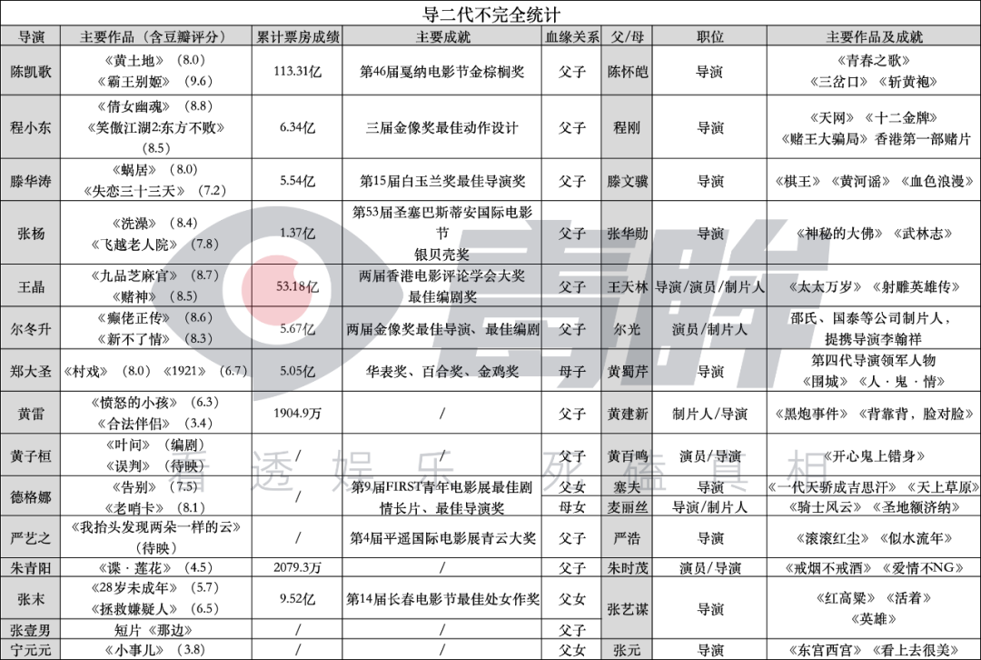 相较于父母从事电影工种,子女做了导演,这类泛化的影二代,本文探讨的是狭义范围内的“导二代”,即两代人都是导演的现象。