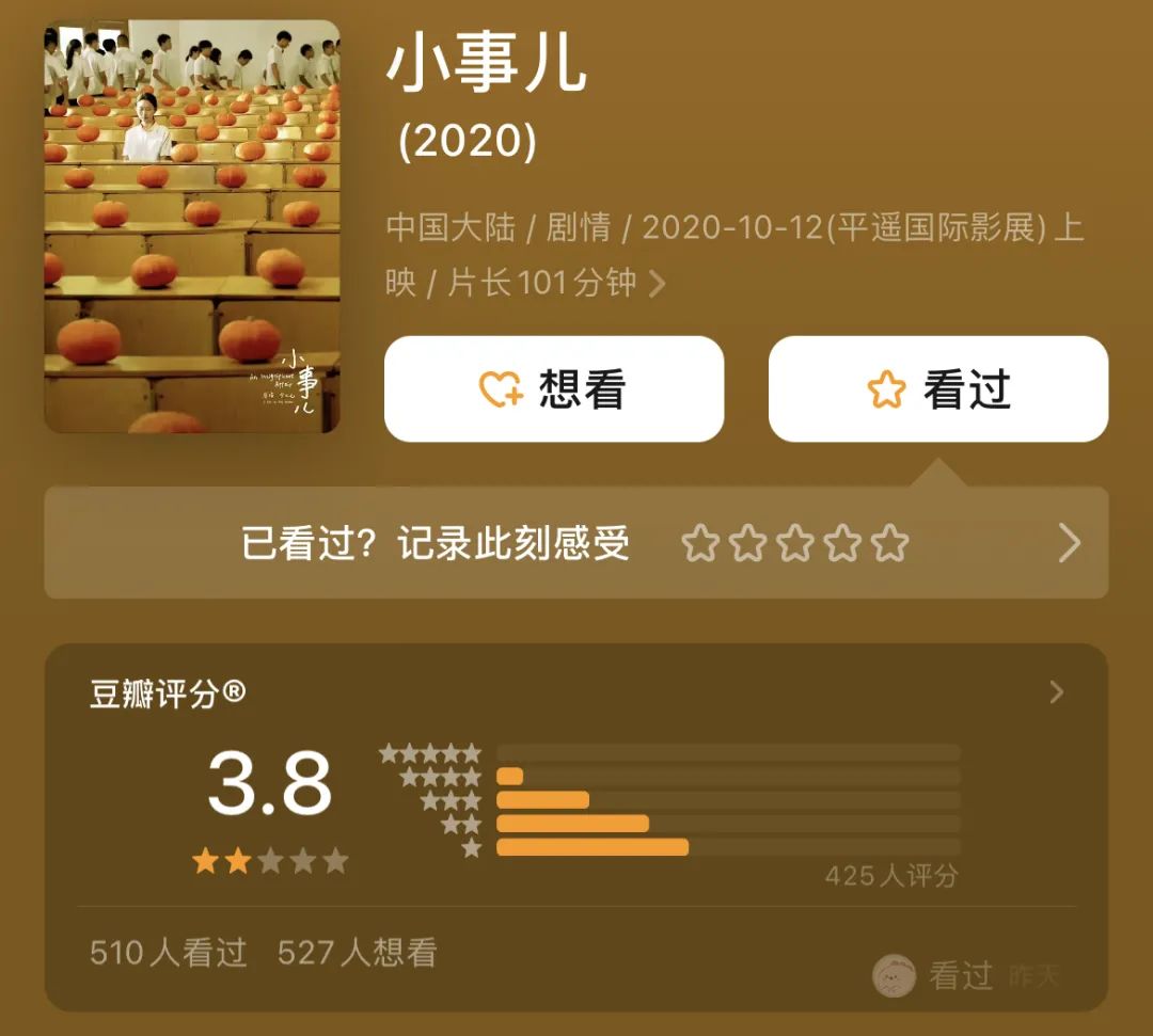 然而,东西方科班教育体系下的差异性,以及长久缺失普通生活的成长经历,让新生代导二代普遍陷入一种身份危机。宁元元的《小事儿》被批缺乏普通高中学生的生活经历,早恋情感刻画低幼,在豆瓣评分只有3.8分。