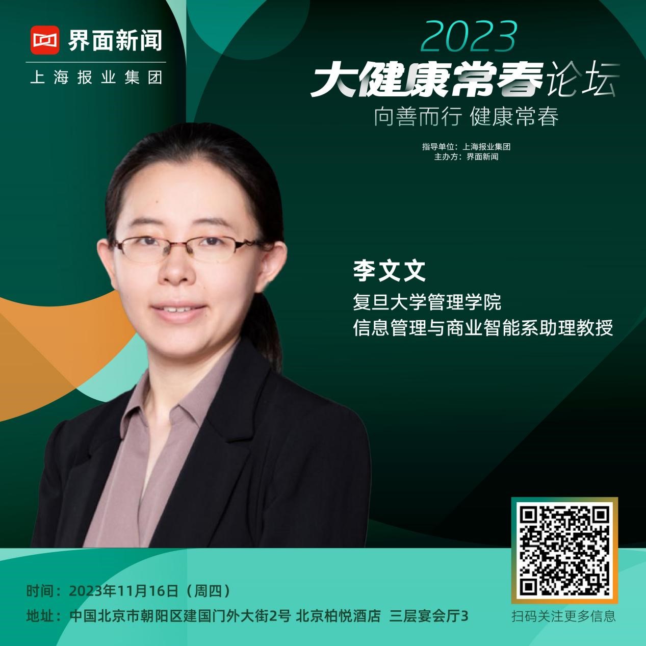 李文文,复旦大学管理学院信息管理与商业智能系助理教授,于香港大学取得博士学位,方向为创新与信息管理。李文文博士的研究兴趣包括智慧医疗,人工智能和金融科技。她的研究发表于管理学领域的顶级期刊和会议,包括MIS Quarterly和ICIS。