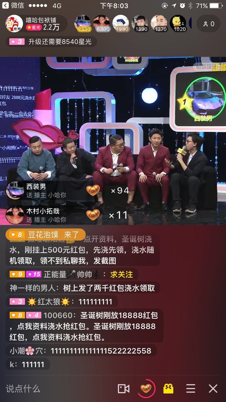 不过,在直播平台上说相声,情况大不一样。直播平台上说相声几乎是无须成本,只需要制备一套说相声的行头即可。嘻哈包袱铺在陌陌直播上一小时就拿到了240万星光值,收入近万元。虽说嘻哈包袱铺在2008年就已经成名,但对很多相声团体来说,直播的确会是一个新出路。