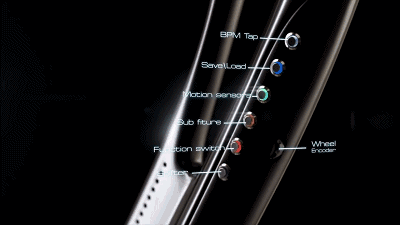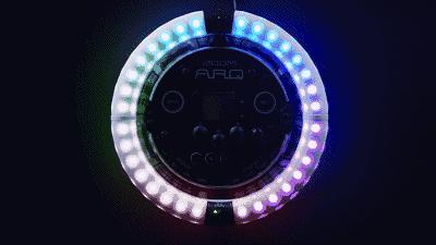 ARQ 属于一个「集大成」的产品。它主要由 2 部分组成。一个是基站,承载了声音库,和弦合成器和数字效果。里面有 468 个鼓和乐器的声音,70 种 采样波形色调和 16 种声音复音;另一个是可拆卸的环控制器。上面有 160 个可编程的彩色 LED 灯 和 96 个速度和压力感应垫和触摸滑块。
