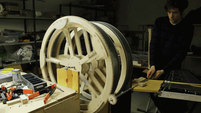 切割齿轮、设计录音漏斗、平衡曲柄轮速度、研究大理石举升结构……最终马丁·莫林终于完成了他的音乐云石机。