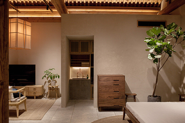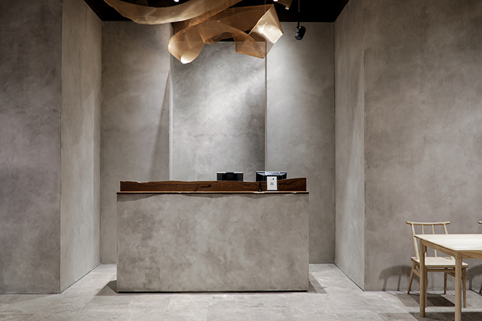 新店主视觉还是延续梵几一贯质朴、安静的侘寂美学,刻意简化软装饰。天然灰泥涂抹的墙面,容易让人联想到寺庙和意大利古建筑中充满岁月痕迹的墙,风格上和梵几家具及之前的几家店保持了一致性。