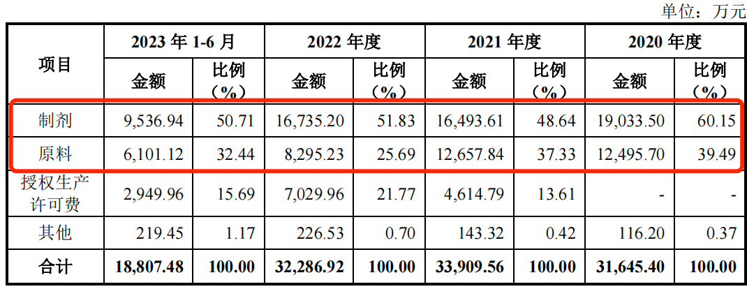 其中,制剂类产品销售收入分别为1.9亿元、1.65亿元、1.67亿元和9536.94万元;原料类产品销售收入分别为1.25亿元、1.27亿元、8295.23万元和6101.12万元,公司主要产品的收入存在增速缓慢以及下滑的情况。