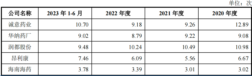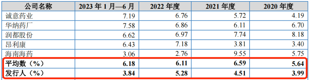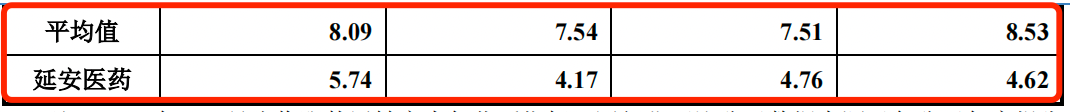 然而,报告期内,同行可比公司的研发费用率均值分别为5.64%、6.59%、6.11%和6.18%,延安医药的研发费用率远低于同行可比公司。