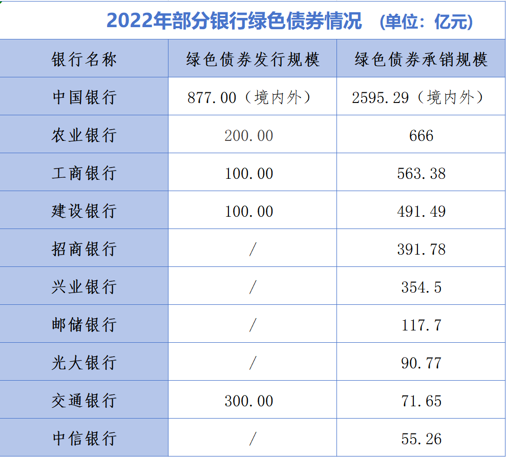 在绿色债券方面,交通银行2022年绿色债券发行规模高达300亿元,在六大行中居于首位。