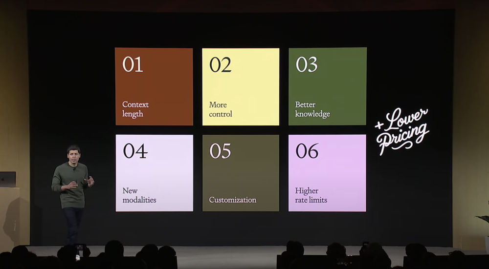 从基础大模型,到工具到底层系统,OpenAI几乎一场发布会完成了乔布斯时代的几件惊天动地的大事。