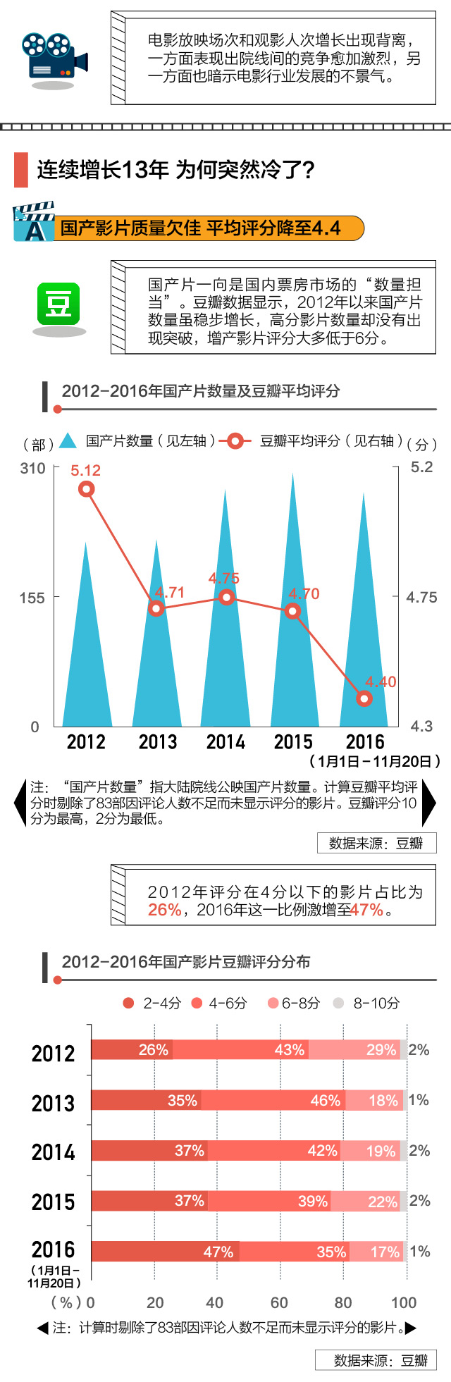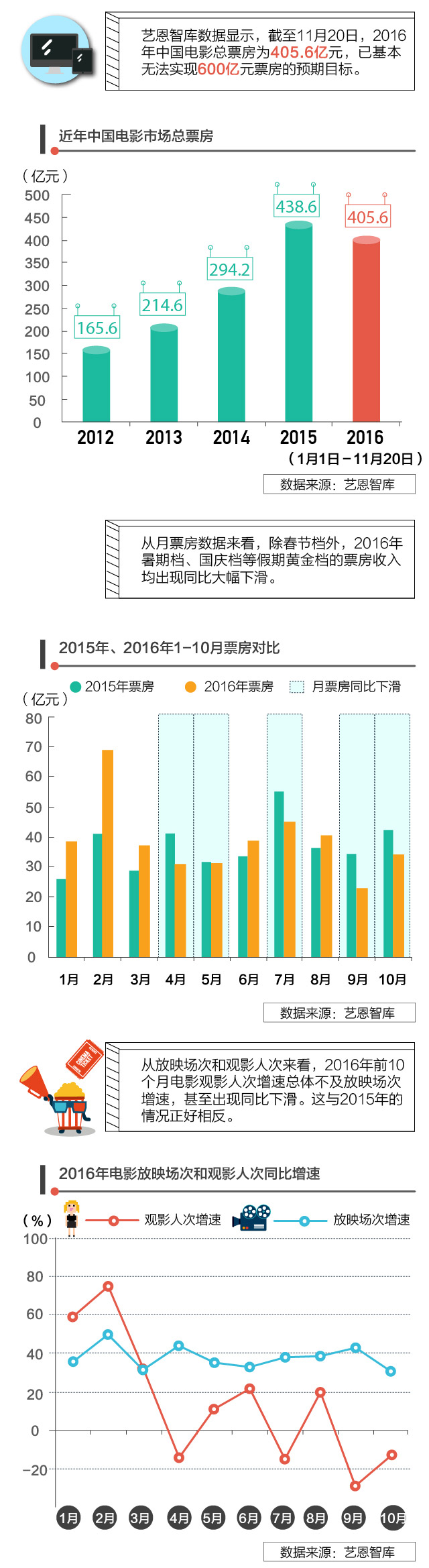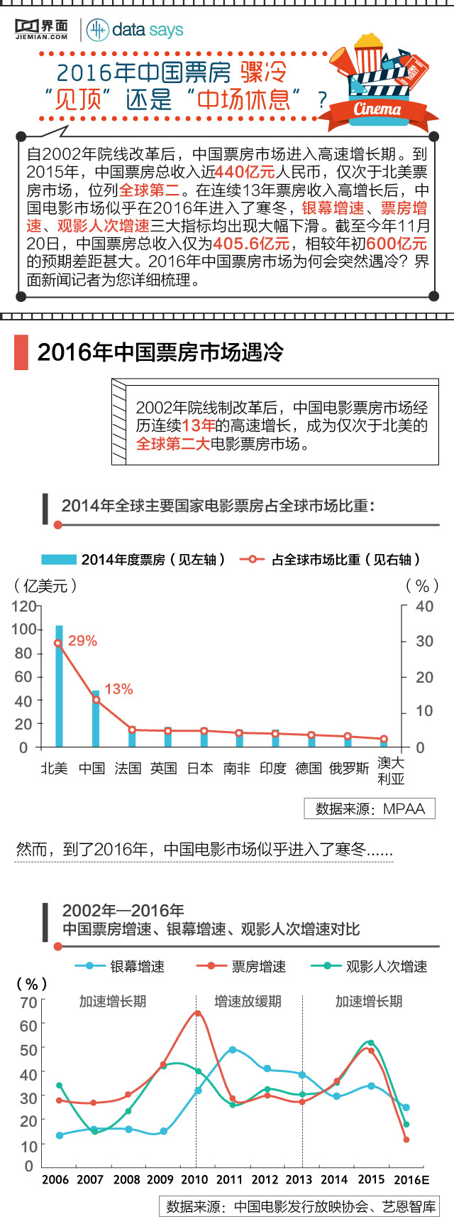 【图解】2016年中国票房骤冷 “见顶”还是“中场休息”?