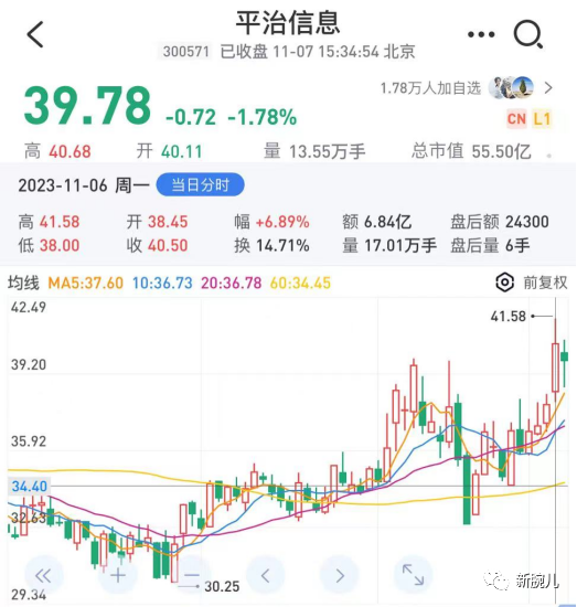在昨天,短剧在二级市场风光无限的时候,平治信息涨幅只有6.89%,报收40.5元/股,11月7日,股价便开始走低。