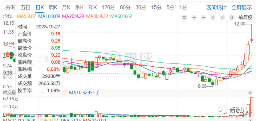 从10月27日起,引力超媒的股价一直在上涨。11月6日,引力超媒上涨8.23%,报收10.91元/股。
