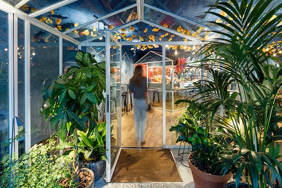 值得一提的是,这家餐厅的不同主题之间都是无缝衔接的。设计师以植物为线索,串联起了这些独立存在的区块,还原出了一个有着不同功能区的小村庄。换句话说,每个主题都可以被看作一个独立的小屋子,只是它们都被鲜花环绕,合起来看就成了一个花园村庄。