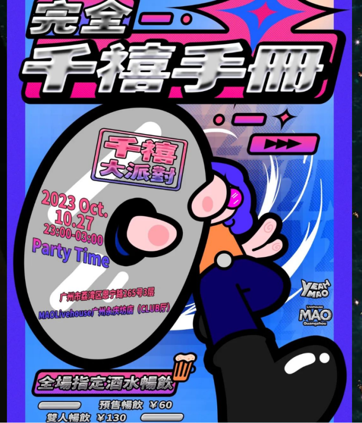 比如传统Live House想方设法在演出空挡时期促进顾客的酒水消费。MAO旗下在演出空闲时段推出“夜猫俱乐部”的club场,没有乐队演出,只有DJ和气氛组,100元左右的票价,酒水畅饮,尽情蹦迪。