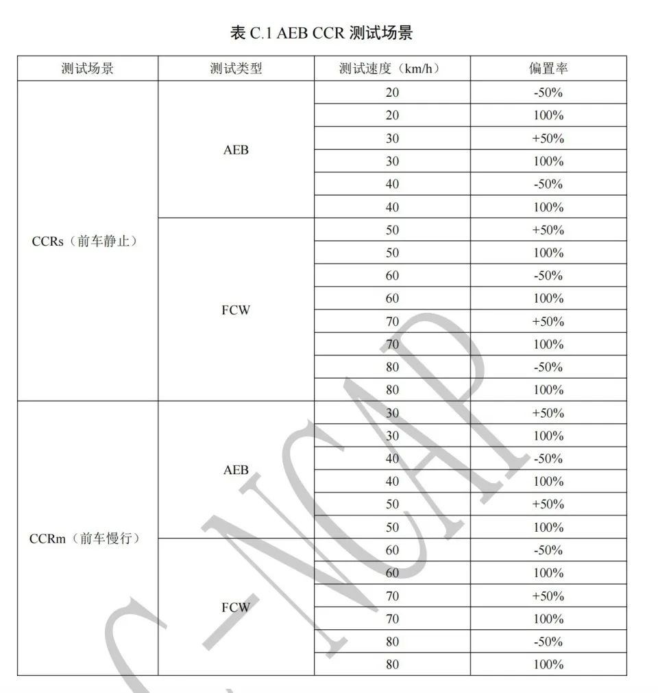 值得关注的是,C-NCAP对AEB测试时速有明确且严格的要求:在车辆追尾自动紧急制动、行人自动紧急制动、二轮车自动紧急制动三项AEB测试中,测试车辆最高时速均在60km/h以内。