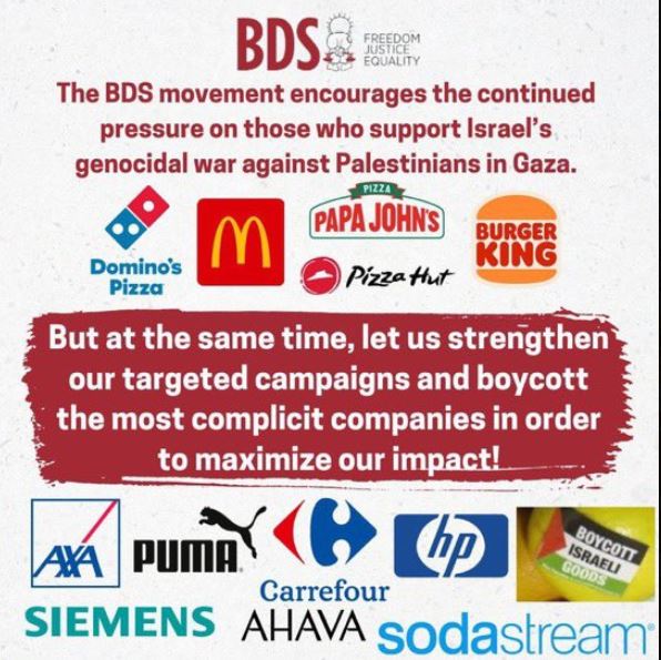 但这份声明并没有让麦当劳解套。巴勒斯坦运动组织“抵制、撤资、制裁”(BDS)在社交媒体发布了抵制名单,麦当劳、必胜客、汉堡王、家乐福、西门子、法国安盛等知名欧美品牌名列其中。“BDS运动”(#BDSMovement)也成为X平台的热门标签。