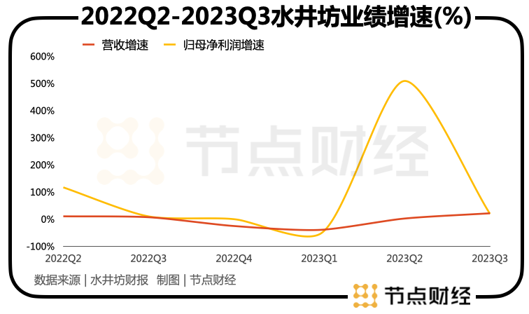 而在Q1和Q2,水井坊的营收增速分别为-39.69%、2.22%,归母净利润增速分别为-56.02%、508.87%。