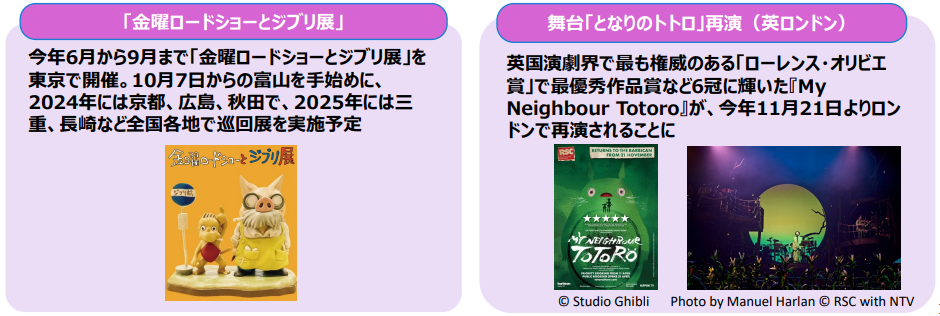 一方面将加速吉卜力方面的企划,如举办“周五路演与吉卜力全国巡回展”、11月在英国伦敦再次上演根据《龙猫》改编的舞台剧。