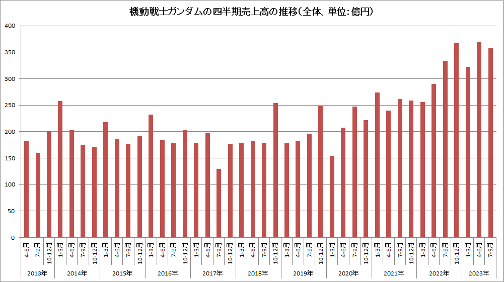 这一点,也可以从文创潮上述的《机动战士高达》各季度销售额推移表看出。