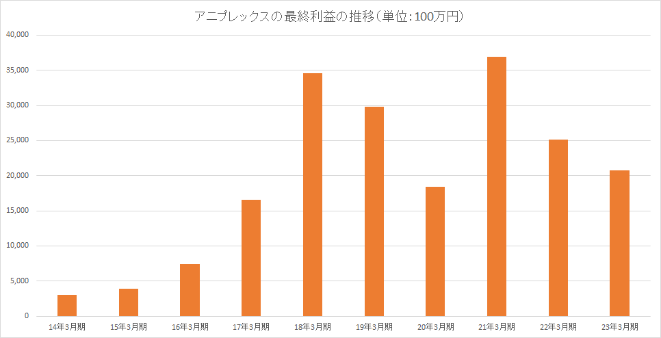 Aniplex年度纯利润推移