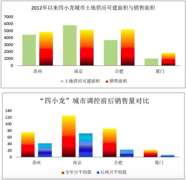 据悉,以杭州、成都、苏州、长沙等为代表的17个热点城市在全国市场份额中所占比重已经达到36.8%。而在去年一轮房价猛涨当中,苏州、南京、合肥、厦门四个城市的房价因涨幅高居榜首,被业界冠以“四小龙”称号。