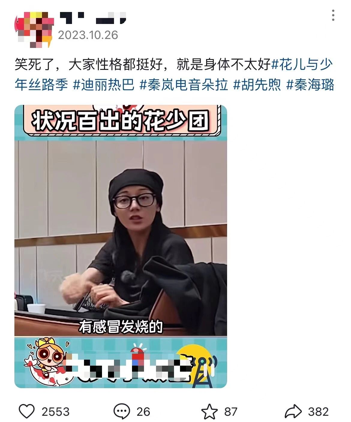 这看上去是个很麻烦的病,但在节目里实在笑点过足,秦岚被网友赐名“电音朵拉”,加上她在整个旅程中话很多,有偶遇她的网友说嗓子至今还没好,被观众吐槽“少说两句早好了”。