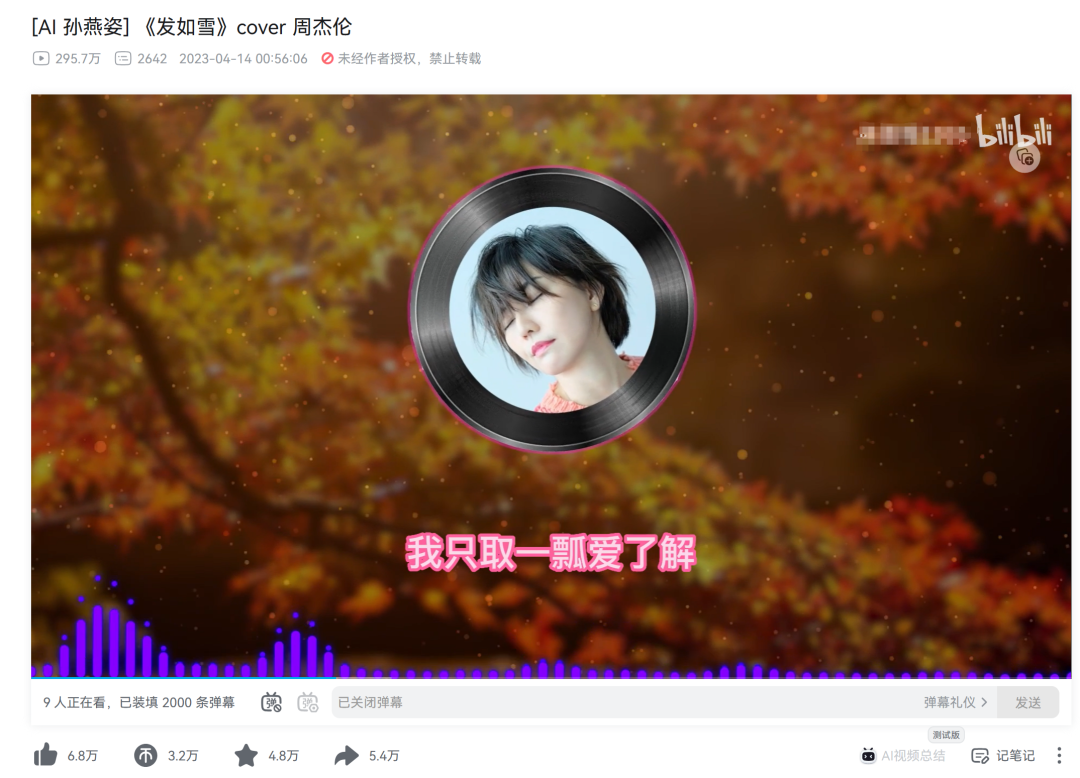 虽然有博主指出,“AI孙燕姿”采用的只是“音色替换”,音色的构成并不复杂,只需要改变“基音”和“泛音”这两种要素的比例,理论上任何人声、乐器的音色都能被复制和创造,而AI所翻唱的曲目,在咬字、呼吸、节奏、乐句处理等演唱技巧层面,套用的还是原唱版。因此AI还不能取代真人演唱。