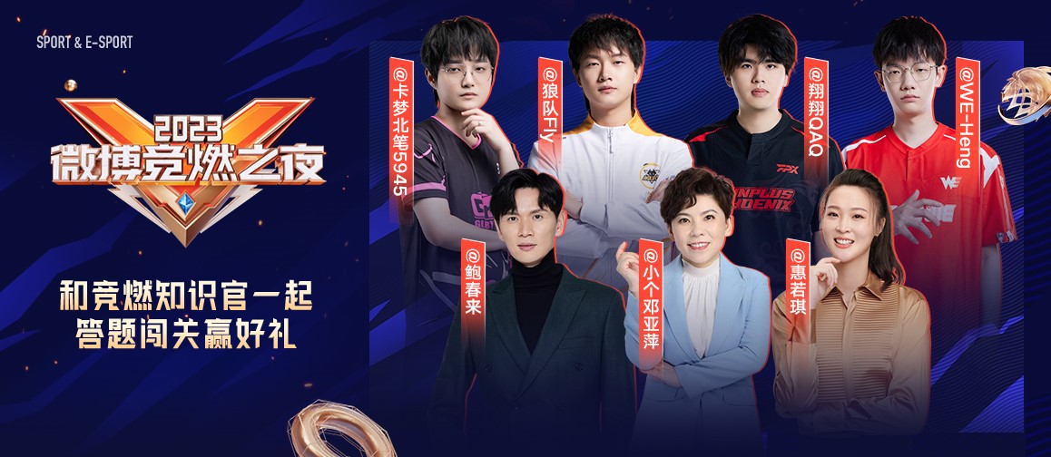 据悉,2023微博竞燃之夜将吸引邓亚萍、惠若琪、孙杨、刘诗雯、张博恒、一诺、九尾、YSKM、JackeyLove、MAYBE等百余位顶级体育及电竞选手、相关组织和协会、官方媒体、跨界明星等重磅嘉宾莅临现场,共同见证竞燃荣誉揭晓。此外,预热期的创新答题、竞燃评选等线上玩法也充分放大活动声量,营造全网的持续高关注氛围。