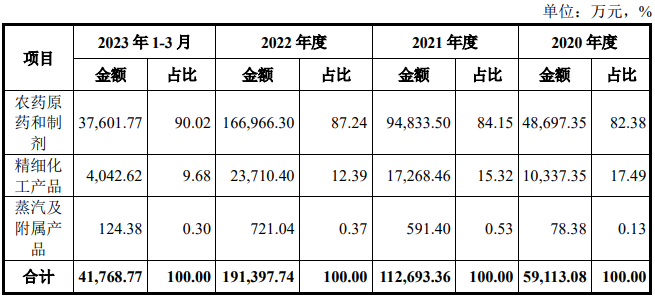 除此之外,红东方募投项目合理性也被市场质疑。从收入来看,截至2023年一季度,红东方90%以上的收入来源于农药原药和制剂,也就是公司主营产品草甘膦。