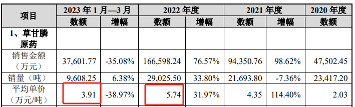 对于公司业绩大幅下滑,红东方在招股书中表示,自2022年开始,草甘膦价格开始从高点阶段性下跌,2023年上半年草甘膦价格进一步下跌。